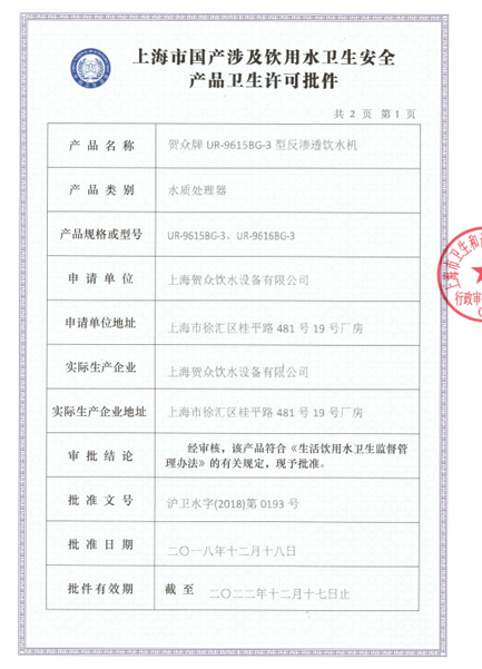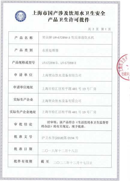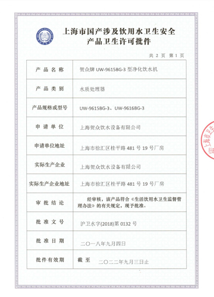 東莞市賀一飲水設備有限公司為賀眾牌飲水設備東莞授權總代理商,證號24019,負責上海賀眾飲水設備所產制的賀眾牌相關產品的銷售以及售后服務。